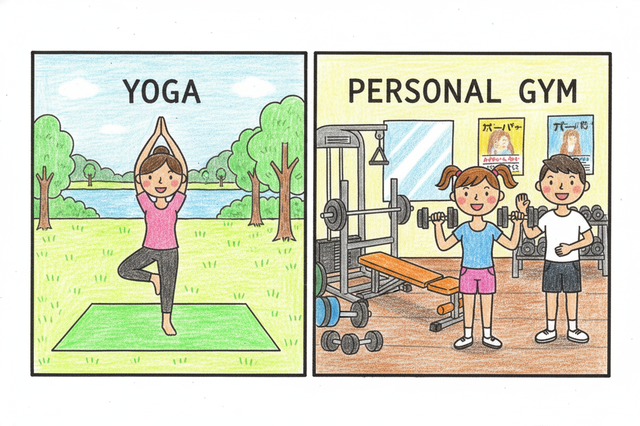- ヨガ 体験レッスンに参加してみました。雰囲気は良かったのですが、朝が早すぎて通うのが難しく、続きませんでした。